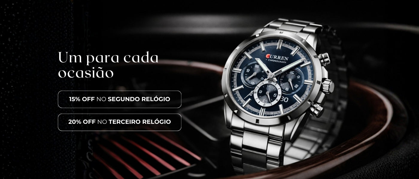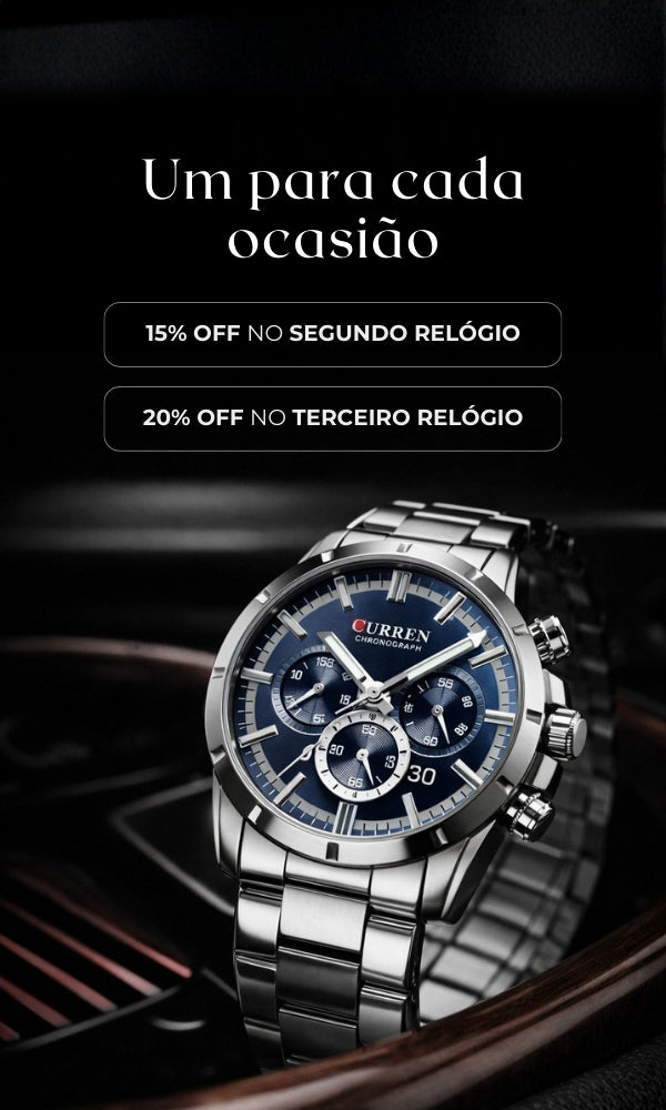 A maioria dos nossos relógios tem resistência à água para uso no dia a dia (lavar as mãos, chuva leve). Veja os detalhes na página de cada produto.